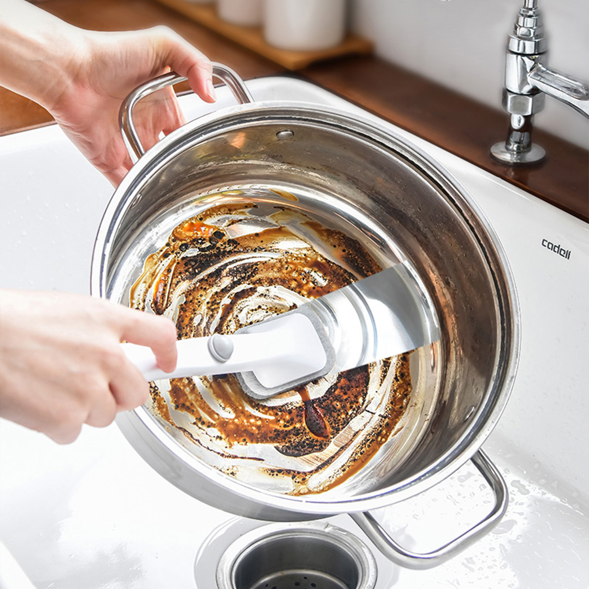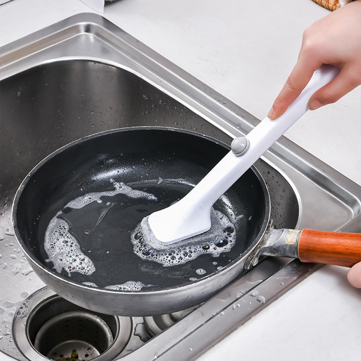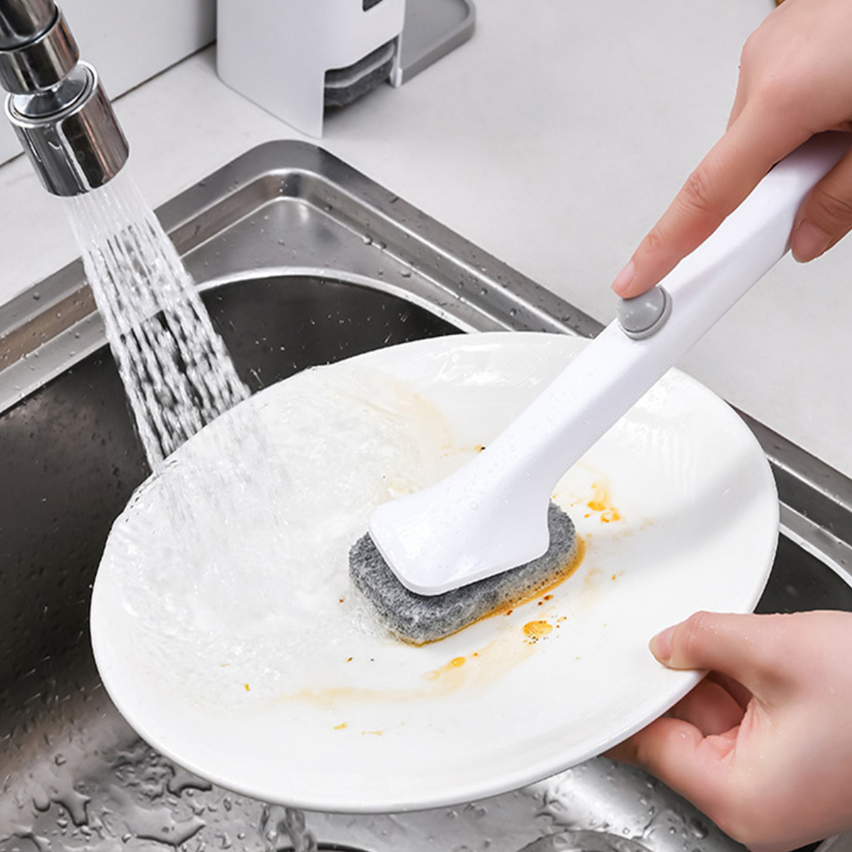Two kinds of brush head refills help to clean tough stains as the disposable design keeps your hands oil-free.