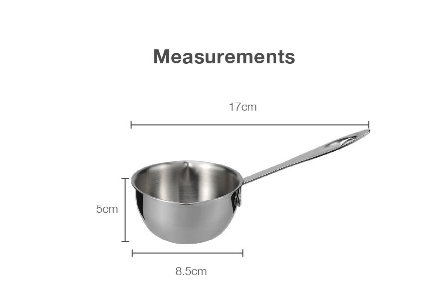 Made of quality stainless steel, the mini pan is perfect for warming sauces, gravies, butter, milk, coffee or melted chocolate.