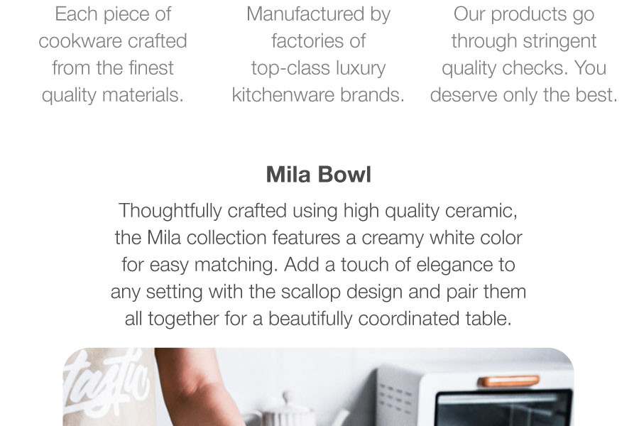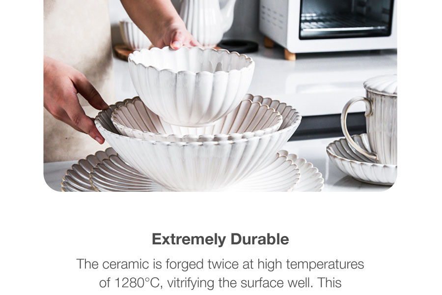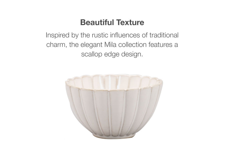 Thoughtfully crafted using high quality ceramic, the Mila collection features a creamy white color for easy matching. Add a touch of elegance to any setting with the scallop design and pair them all together for a beautifully coordinated table.