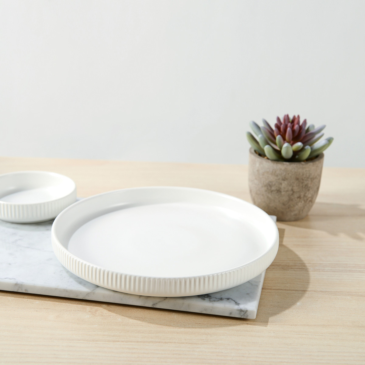 The Whitney tableware series feature a beautiful smooth off-white glaze and sophisticated vertical strips to present every detail of your culinary creations better.