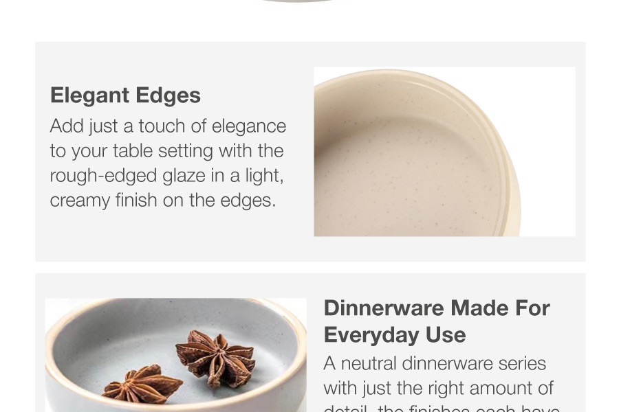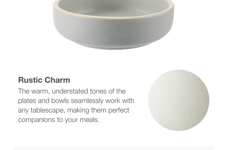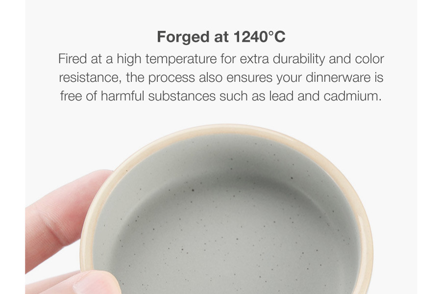 A series of modern and expressive dinnerware rustic in glaze. A matte interior and unique speckles from the reactive glaze lend an artisanal appeal to the casual round shape. Forged at a high temperature of 1240 ℃ for extra durability.